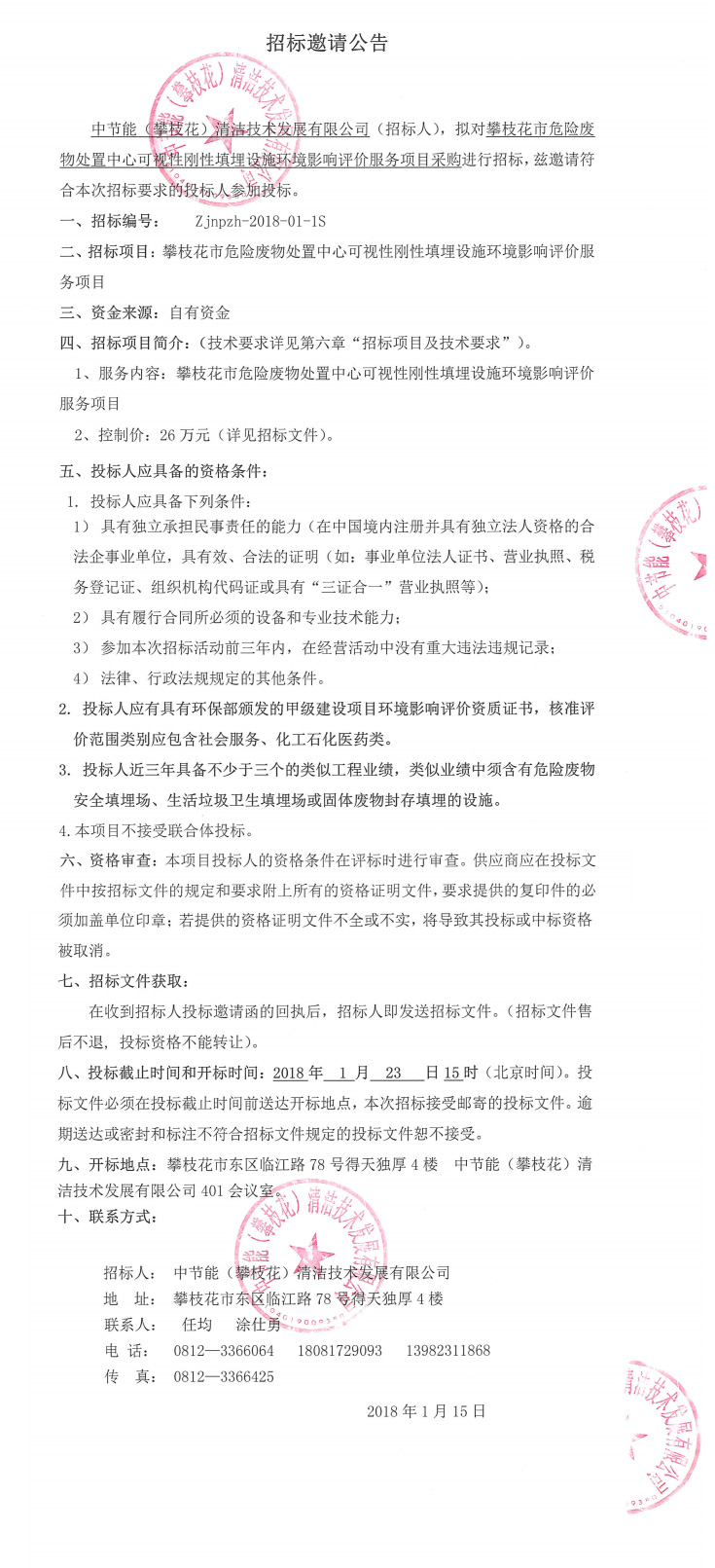 攀枝花市危險廢物處置中心可視性剛性填埋設(shè)施環(huán)境影響評價服務(wù)項目采購招標公示