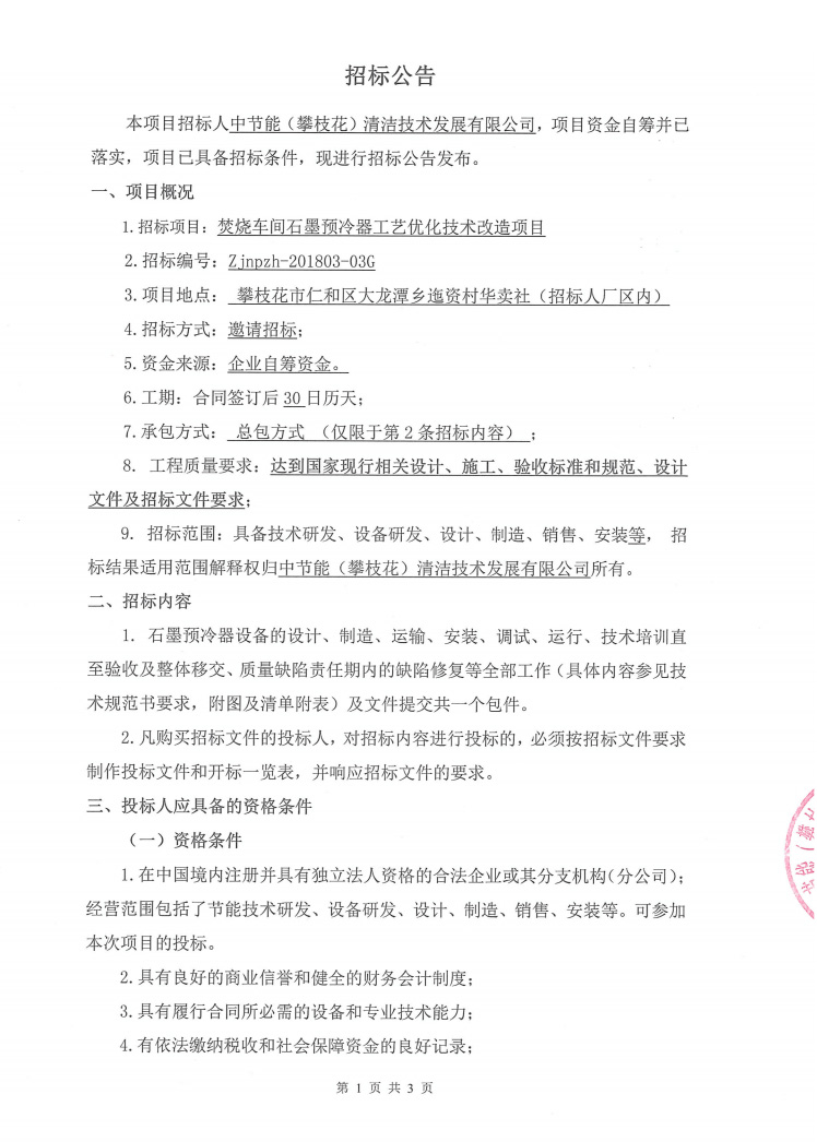 焚燒車間石墨預(yù)冷器工藝優(yōu)化技術(shù)改造項目招標(biāo)公告