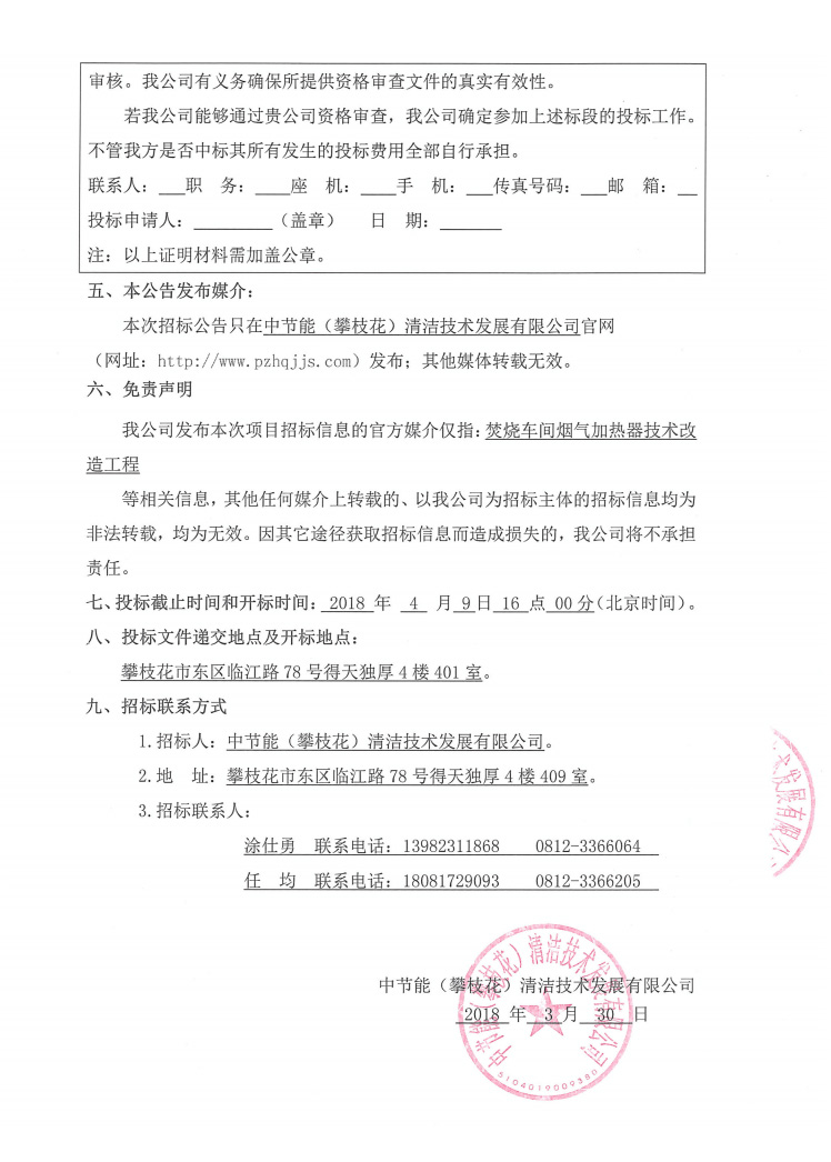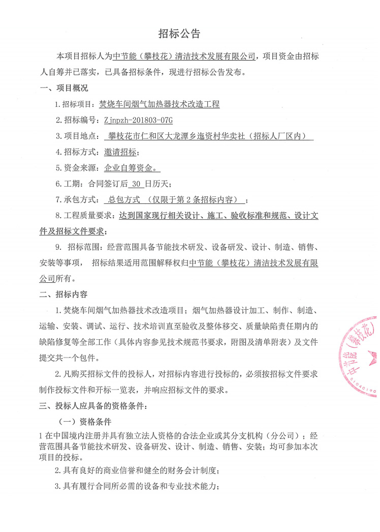 焚燒車間煙氣加熱器技術(shù)改造工程招標公告