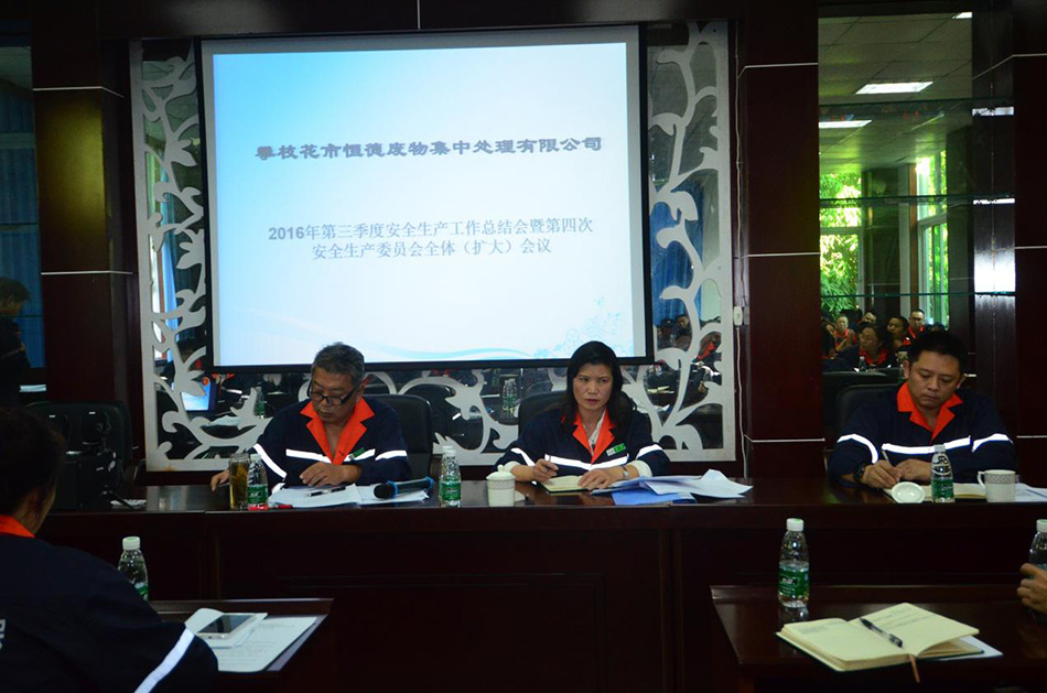 2016年11月10日下午,攀枝花市恒德廢物集中處理有限公司召開了第三季度安全生產(chǎn)工作總結(jié)會暨第四次安委會(擴大)會議,公司安委會成員和全體員工參加會議。 會議學(xué)習了中環(huán)集團公司鄭朝輝董事長關(guān)于“中國環(huán)保